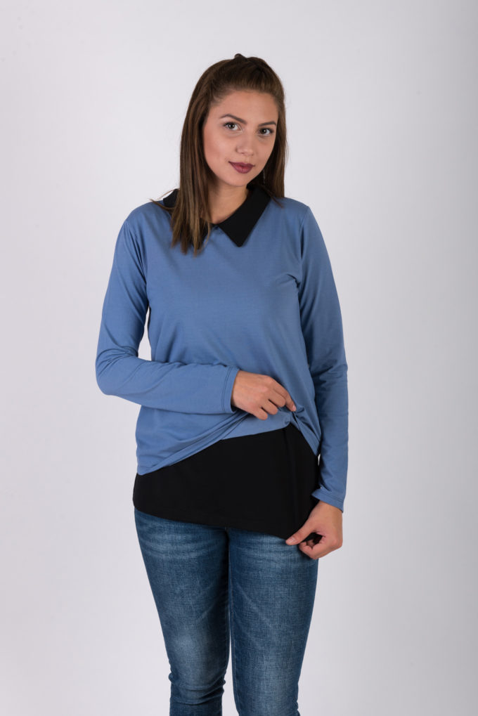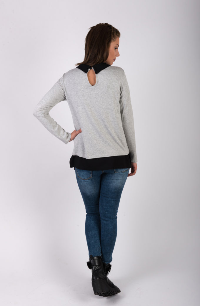 Our Collar Top maternity & nursing sweater is a must-have before, during & after pregnancy. The top itself is made in ultra-soft sweater fabric providing plenty of stretch and draping beautifully over your curves. A smart black collar in contrasting black viscose coordinates with the black nursing under-top. Easy lift-up access for nursing after baby is born. Team this chic grey maternity top with jeans & boots for easy everyday style.
