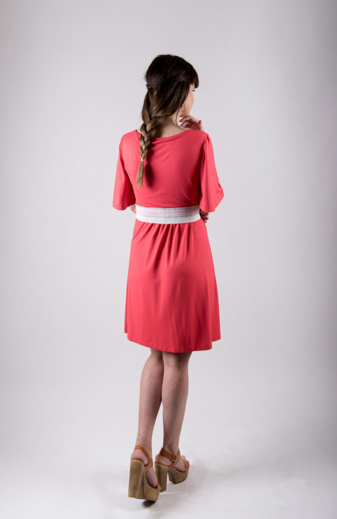 Nursing dress Coral sea is an elegant pregnancy and nursing dress with special sleeves, made of soft viscose in two fabulous summer colors : coral and blue . It is an easy choice from morning till night. This dress offers a relaxed, flexible fit throughout, while the top layer lifts up to reveal easy access for breastfeeding.  Made of cool viscose this nursing dress just feels good all day long!  Find it in two summer colours!
