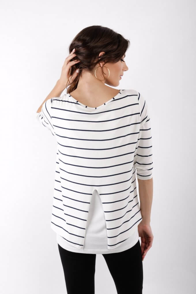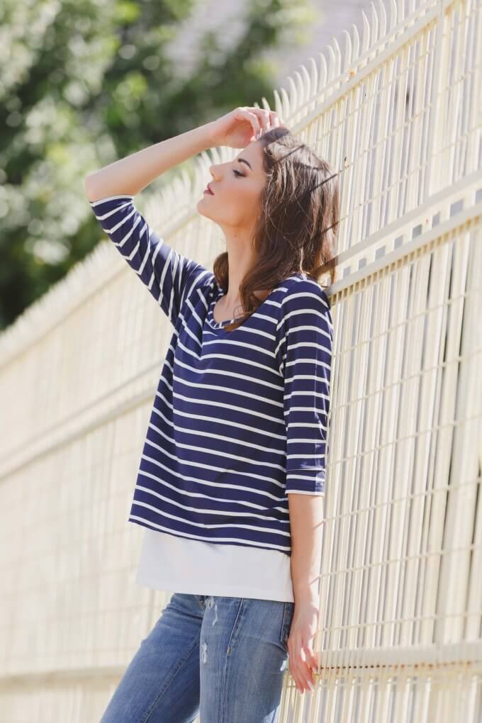 Η μπλουζα θηλασμου Navy-White stripes σε δύο πανέμορφες χρωματικές παραλλαγες ταιριάζει απόλυτα σε κάθε γυναίκα. Είναι η ιδανική μπλούζα για να φορεθεί την περίοδο εγκυμοσύνης αλλά και μετά, την διάρκεια του θηλασμού. Η απαλή βισκόζη αγκαλιάζει όμορφα το σώμα. Μπορεί να φορεθεί το φθινόπωρο αλλά και την άνοιξη με τις πρώτες ζέστες. Συνδυάζεται τέλεια με το αγαπημένο σας τζιν και τα αθλητικά σας για καθημερινές εμφανίσεις, και η λευκή απόχρωση της μπλούζας ταιριάζει άψογα και με το κολάν της koupepe για πιο κομψές εμφανίσεις.