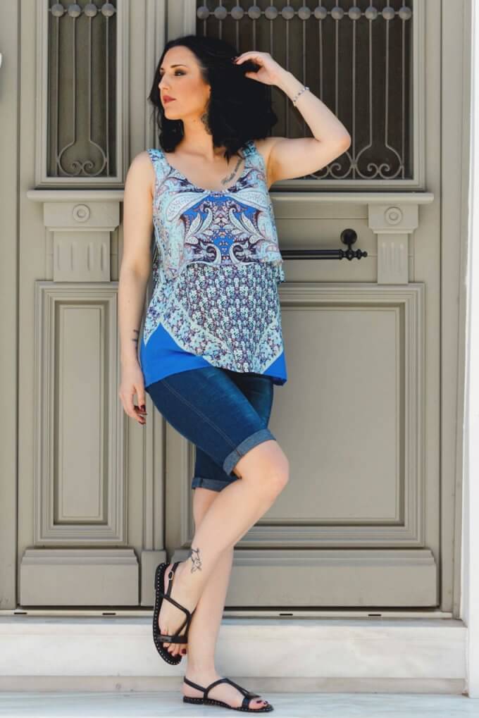 Το κομμάτι που δεν πρέπει να λείπει από καμία ντουλάπα. Η βερμούδα εγκυμοσύνης denim είναι ένα κομμάτι που θα το αγαπήσετε και θα το φορέσετε πολύ. Προσφέρει στήριξη για την κοιλιά σας κατά τη διάρκεια εγκυμοσύνης, αλλά η ελαστικότητα του θα το κάνει να παραμείνει στην γκαρνταρόμπα σας και μετά τη γέννα. Φοριέται όλη μέρα, από το πρωί με ένα χαλαρό T-shirt, μέχρι το βράδυ με ένα αέρινο μπλουζάκι όπως το blueshades top! Μη διστάσετε να το φορέσετε με πλατφόρμες αλλά και με πέδιλα ή sneakers.
